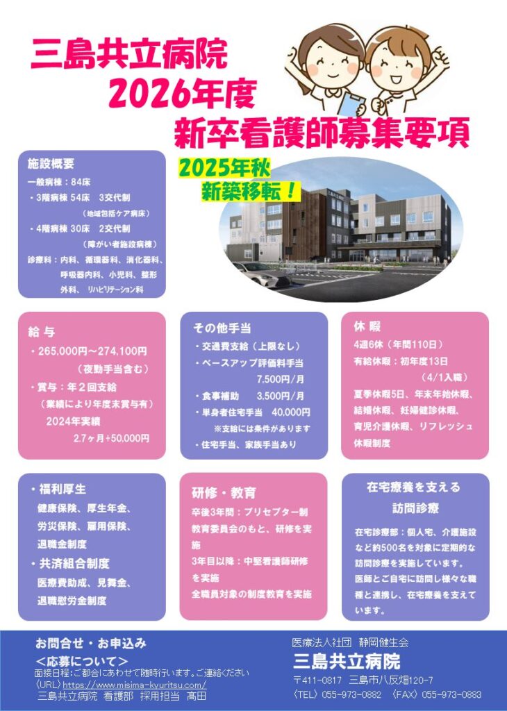 2026年度の看護師募集要項を掲載いたしました。看護学生だけではなく既卒の方もお申込みいただけます。