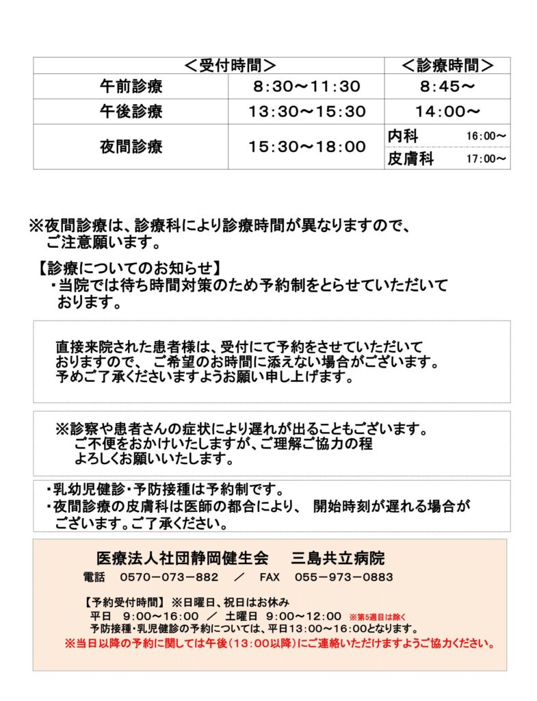 2025年(令和7年)10月の外来診療体制は以下の予定です。