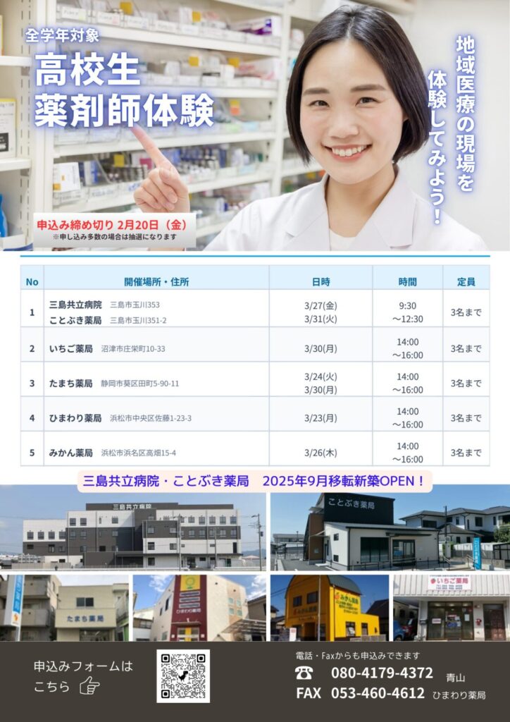 2026年(令和8年) 春の高校生薬剤師体験のお知らせ