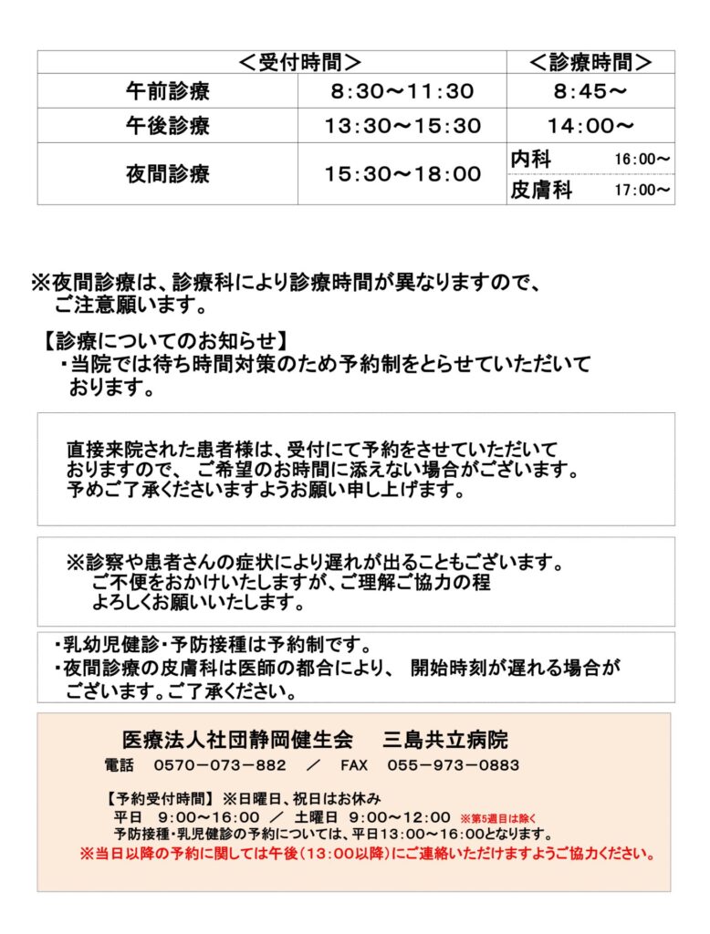 三島市の内科(呼吸器内科・消化器内科・循環器内科)・皮膚科・整形外科・小児科・卒煙外来・健康診断・在宅診療・オンライン診療の三島共立病院