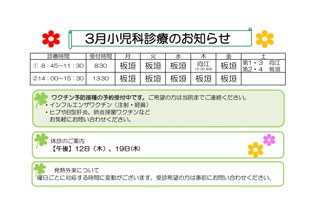 2026年(令和8年)3月 小児科体制表